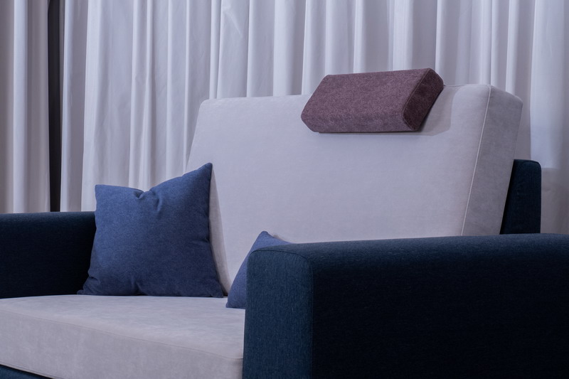 | 水咚咚沙發的衍生作品,加高的椅背,是讓頭部足以支撐的高度,搭配外掛的枕頭可以更舒適。配合椅背的高度,加高了扶手也加深了坐深,使各方面的比例更適當。當然這些都是可以依照您的需求調整。椅套可以拆換,清潔上更加便利。 |